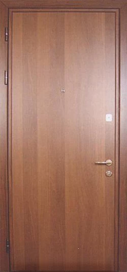 Ламинат - это доска из ДВП толщиной 4-5 мм с четырехслойным покрытием. Визуально он не отличается от натуральной древесины. Рисунок ламинированной доски может быть гладким и имитировать древесный спил или рельефным, имитирующим структуру дерева. Разнообразная цветовая гамма этого материала позволяет изготовить дверь, которая будет отлично смотреться в интерьере как квартиры, так и офиса.