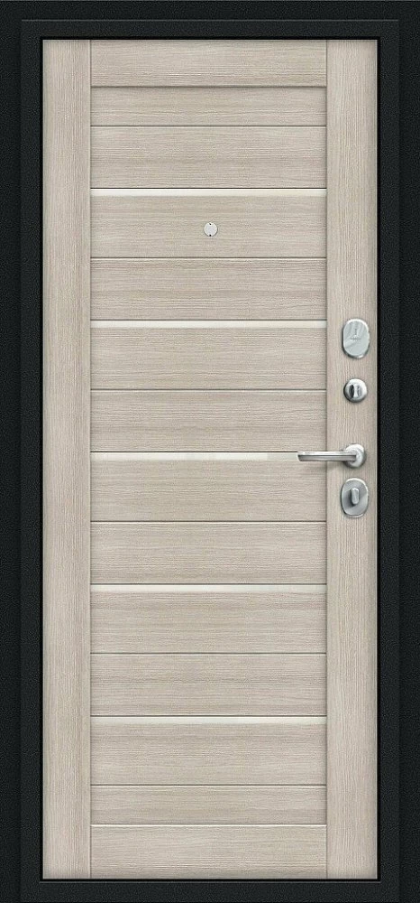 Надежная входная Браво Техно Kale Букле черное/Cappuccino Veralinga премиум класса по цене 33 685 руб. Большая толщина стали защитит от проникновения в ваш дом, квартиру или коттедж. Используется очень качественная фурнитура: замки, цилиндры, ручки, защелки. Покрытие и отделка двери изготовлено под внимательным контролем производителя. Дверь имеет долгий срок службы и гарантию.
