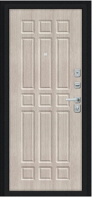 Надежная входная Дверь Браво Мило МФ/BChrome Букле черное/Cappuccino Melinga премиум класса по цене 32 935 руб. Большая толщина стали защитит от проникновения в ваш дом, квартиру или коттедж. Используется очень качественная фурнитура: замки, цилиндры, ручки, защелки. Покрытие и отделка двери изготовлено под внимательным контролем производителя. Дверь имеет долгий срок службы и гарантию.