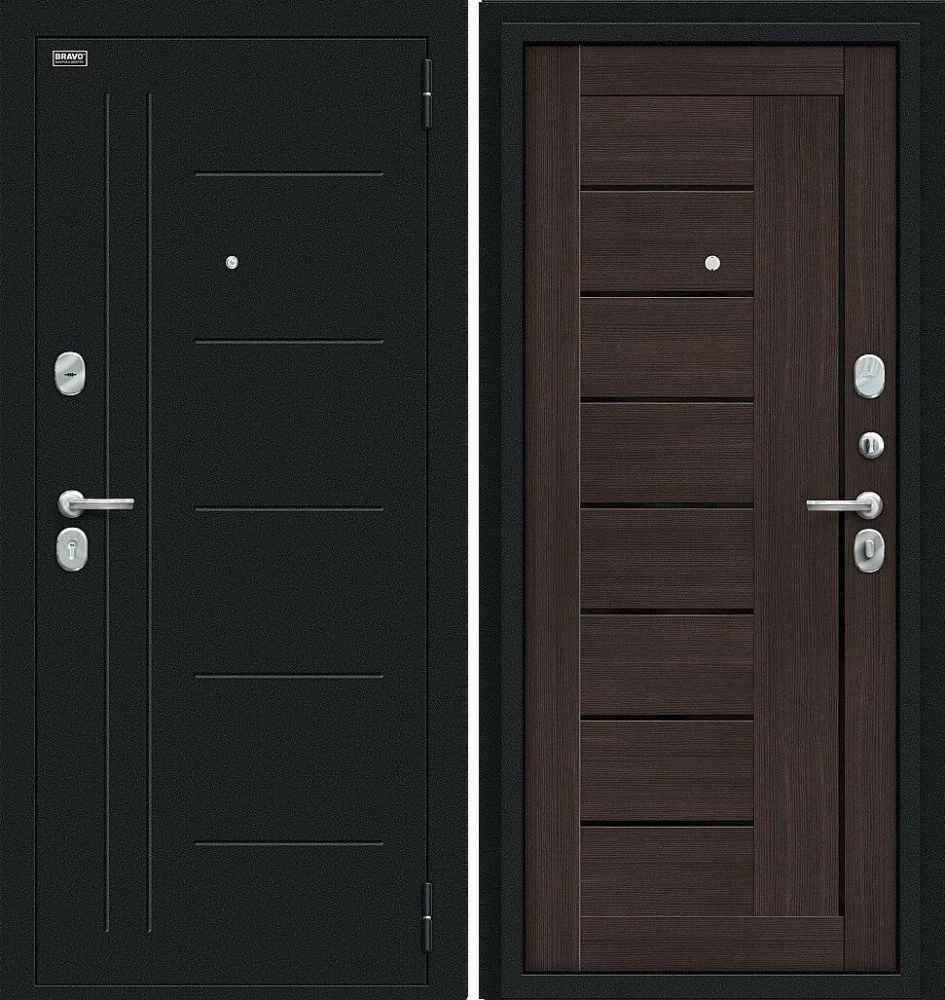 Надежная входная Дверь Браво Проф Букле черное/Wenge Veralinga премиум класса по цене 32 535 руб. Большая толщина стали защитит от проникновения в ваш дом, квартиру или коттедж. Используется очень качественная фурнитура: замки, цилиндры, ручки, защелки. Покрытие и отделка двери изготовлено под внимательным контролем производителя. Дверь имеет долгий срок службы и гарантию.