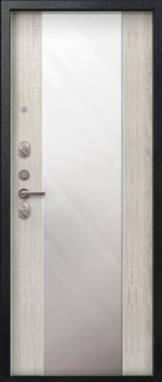 Надежная входная Дверь V-04 Черный муар - Полярный дуб Зеркало премиум класса по цене 44 635 руб. Большая толщина стали защитит от проникновения в ваш дом, квартиру или коттедж. Используется очень качественная фурнитура: замки, цилиндры, ручки, защелки. Покрытие и отделка двери изготовлено под внимательным контролем производителя. Дверь имеет долгий срок службы и гарантию.